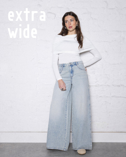 Le jean extra wide est le petit frère du jean wide, mais en plus large au niveau des cuisses et du bas.Un extra wide pour quel effet ?