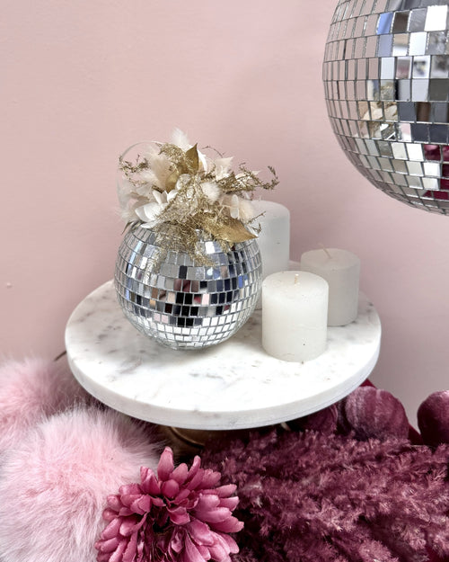 Revisitez, avec Dahlia Pinnata, la boule disco avec des jolies fleurs séchées pour en faire un objet déco shiny et bohème. Juste parfait pour twister un sapin de Noël, ou même un intérieur !