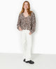 Blouse avec nouettes et manches ballons léopard