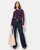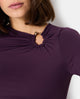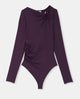 Body en maille stretch avec col asymétrique et bijou