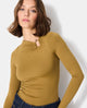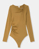 Body en maille stretch avec col asymétrique et bijou