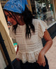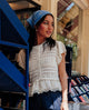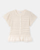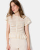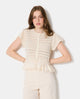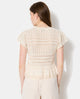 Gilet manches courtes en maille ajourée et dentelle