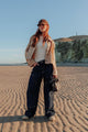 Jean barrel taille medium avec jeux de couture