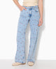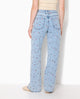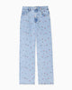 Jean straight taille haute avec broderies fleurs