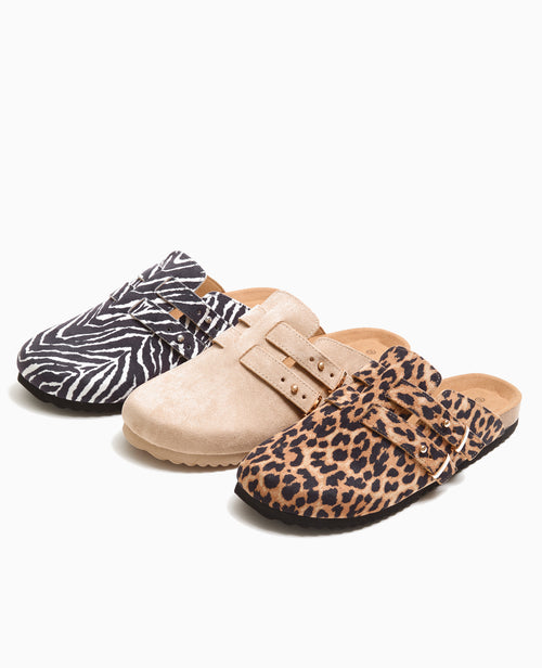 Mules sabots en suédine motif léopard