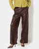 Pantalon droit en simili avec sur piqûres