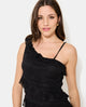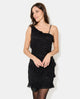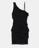 Robe courte asymétrique en dentelle et volants