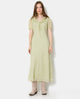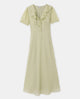 Robe longue avec col volanté et ceinture à nouer