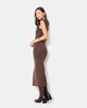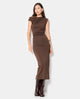 Robe longue en maille stretch avec fronces