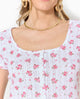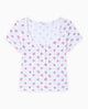 T-shirt boutonné en maille pointelle motif fleurs