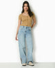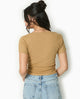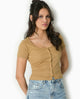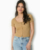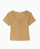T-shirt court boutonné en maille côtelée