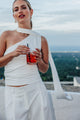 Top asymétrique one shoulder avec effet foulard