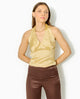 Top dos-nu en satin motif pois