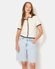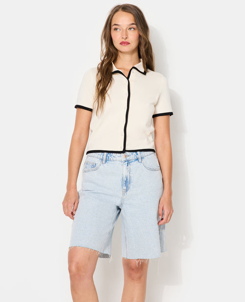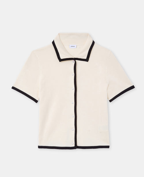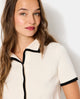 Top gilet en maille fine avec boutons perles
