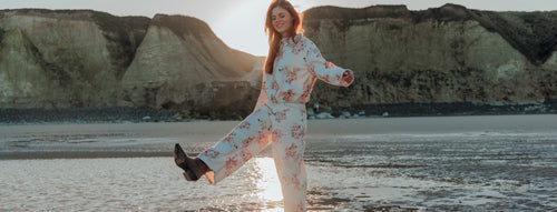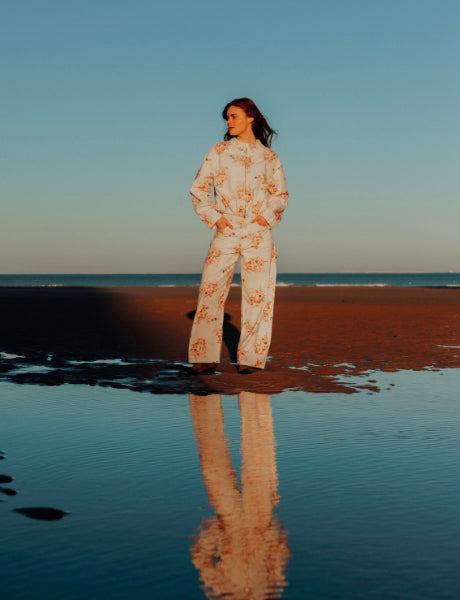 Veste matelassée motifs fleurs avec grand col