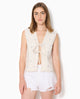 Veste sans manche en jean avec broderies fleurs